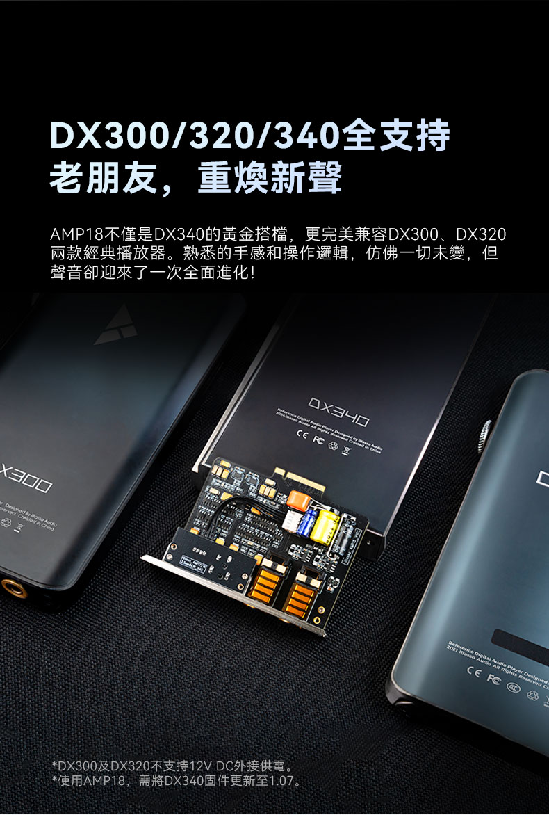 ※ 使用 AMP18 搭配 DX340,需將 DX340 韌體更新至 1.07