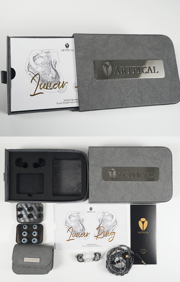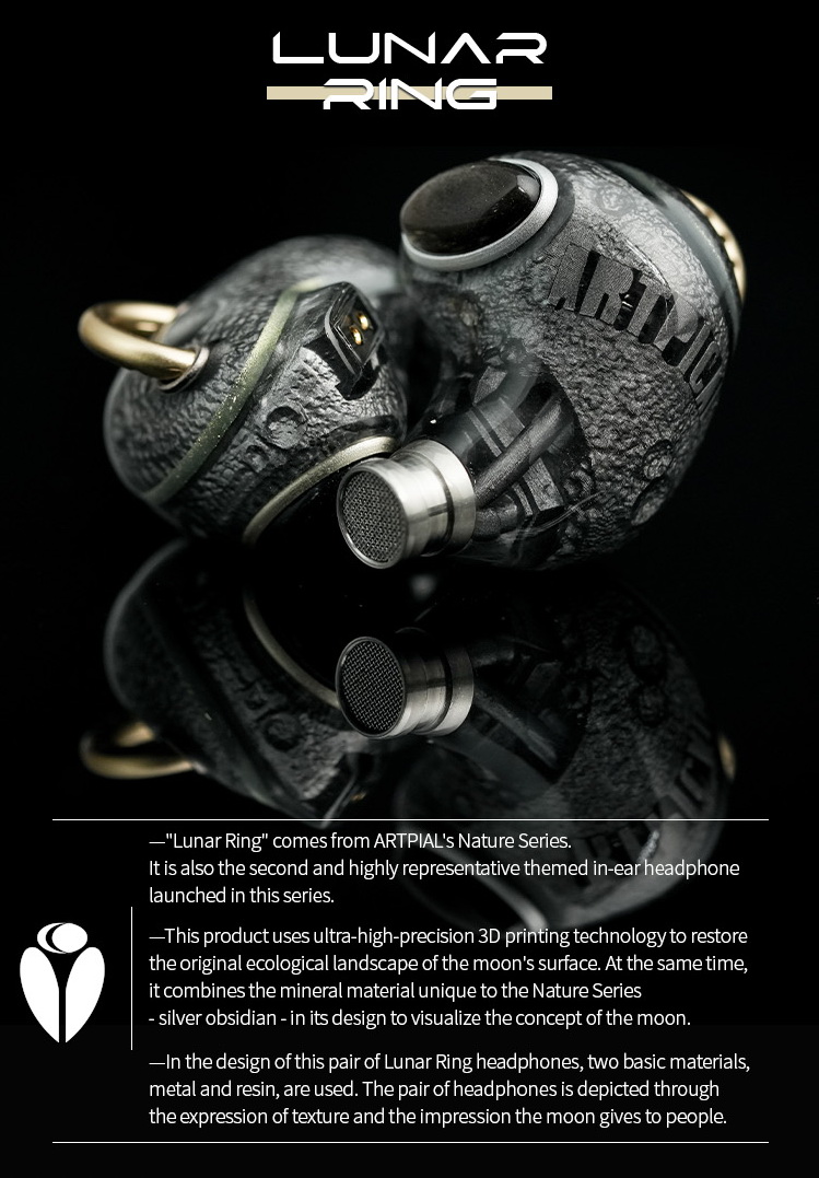 ARTPICAL Lunar Ring 是 Nature Series 中極具代表性的主題式入耳式耳機,設計核心以月球與月暈現象為靈感,將天體意象、表面紋理與光影概念轉化為可佩戴的聲學作品。它並非只是單純套用宇宙風格的外觀語言,而是從產品開發初期就把故事性納入設計邏輯,讓耳機本體、外部輪廓、金屬環細節與配件視覺都圍繞月球主題展開。這種做法讓 Lunar Ring 在產品定位上不只是混合單元耳機,更是兼具完整世界觀與辨識度的系列作品。