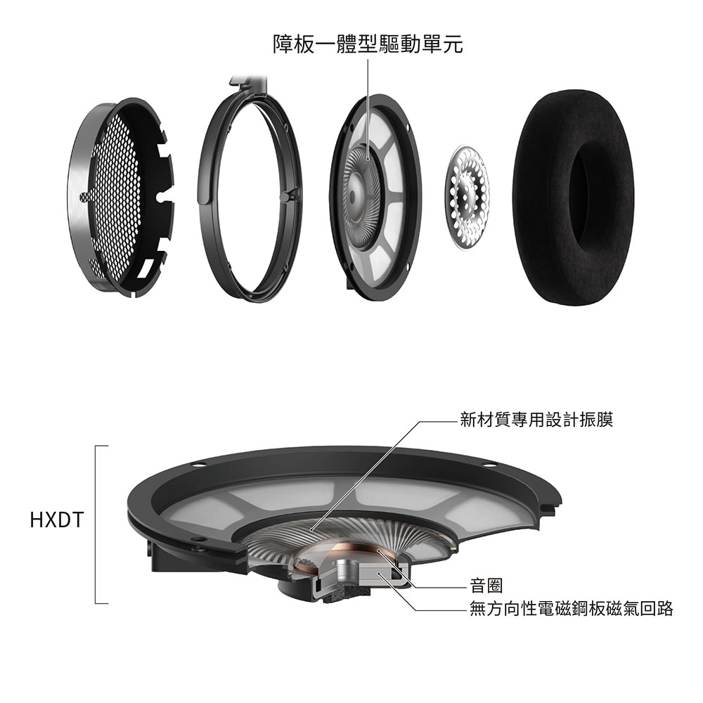 搭載自家開發的 HXDT(High-Concentricity X Dynamic Transducer)高精度同軸動圈技術,從振膜、障板、磁鐵到音圈皆嚴密對齊於同一軸線,帶來絕佳的訊號穩定性與超越以往十倍的組裝精度。其音場開闊自然,音像深邃立體,彷彿置身現場,捕捉每一絲細節。