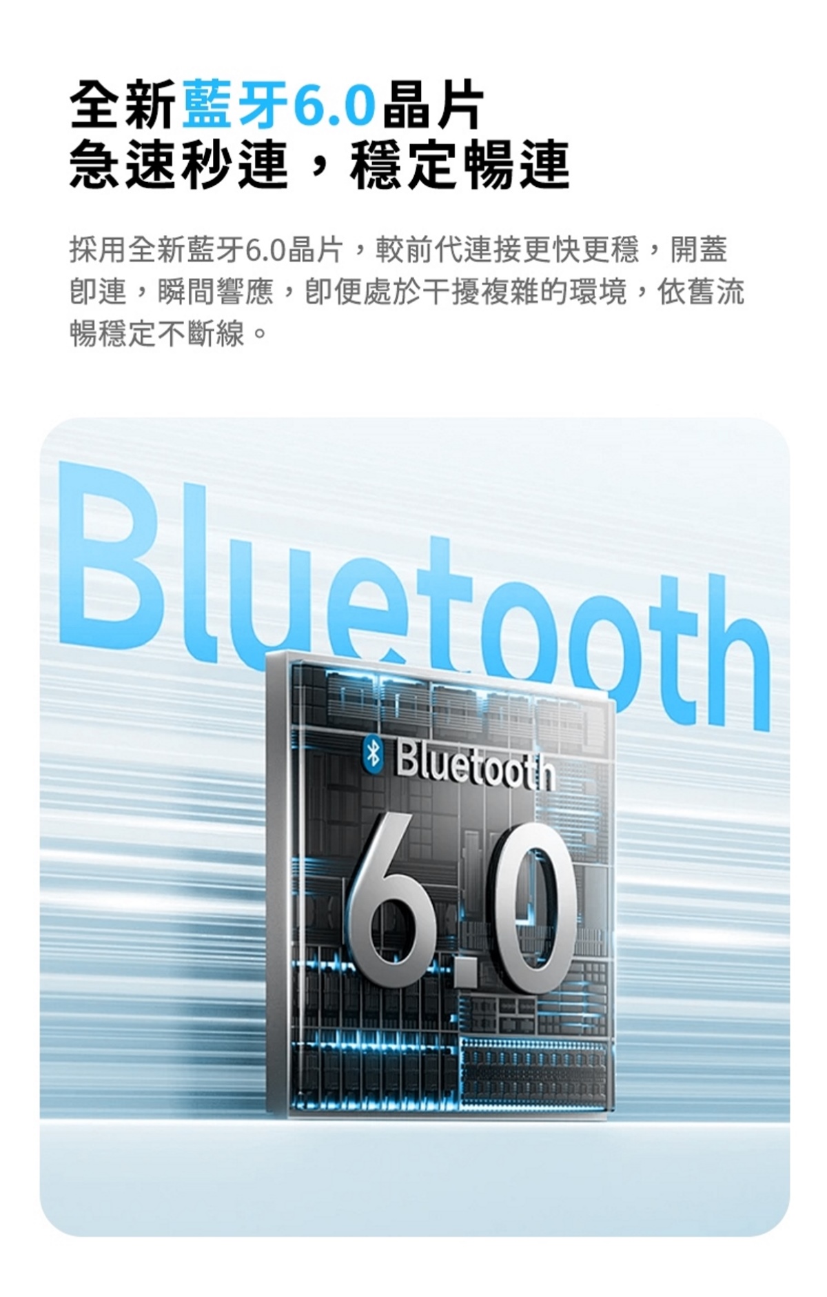 ● 採用藍牙6.0晶片,強化連線速度、穩定性與多裝置使用流暢度