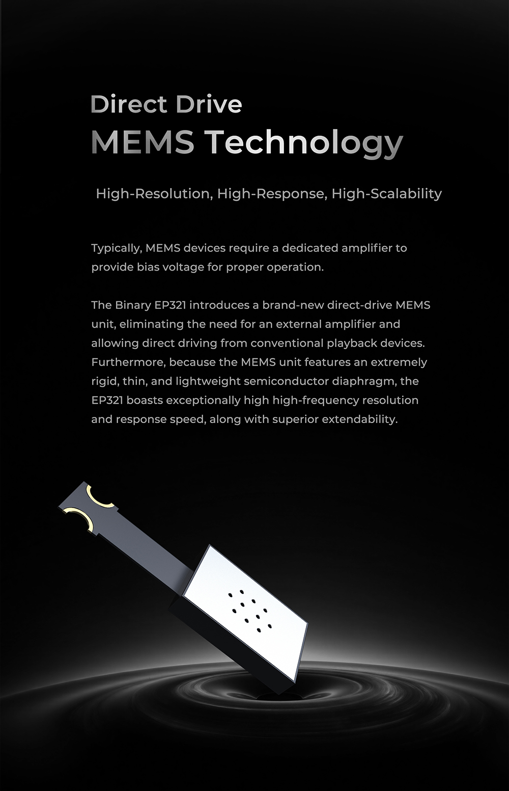 ● 全球首款 Direct Drive MEMS 直驅技術 IEM
