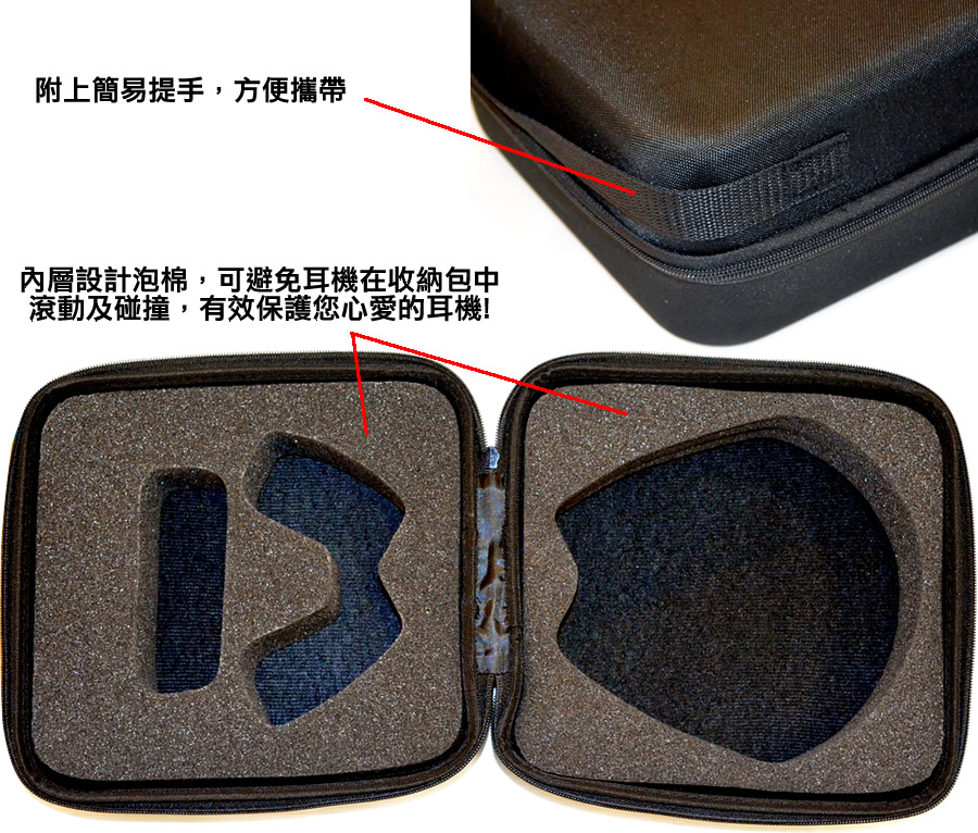 - 內層設計泡棉,可避免耳機在收納包中滾動及碰撞,有效保護您心愛的耳機!