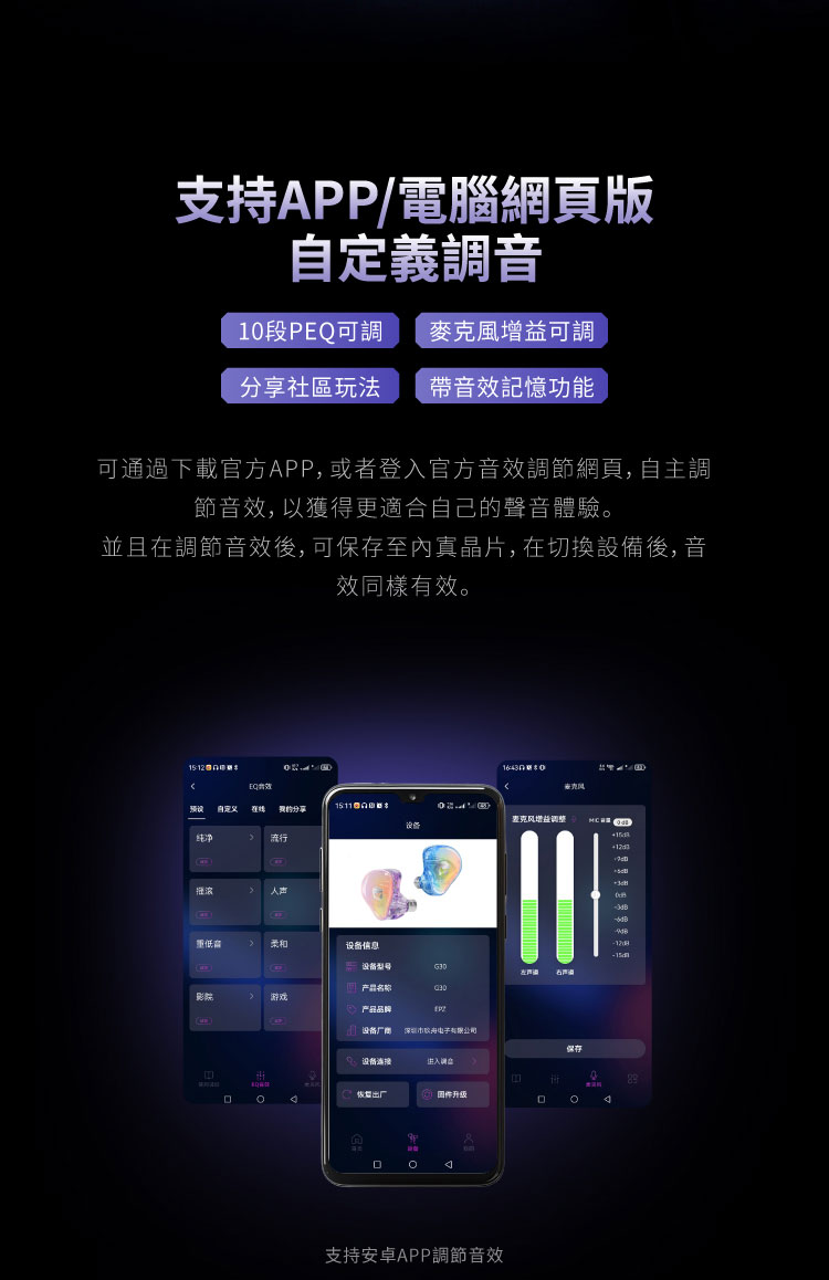 調音功能:支援APP/電腦網頁自定義調音