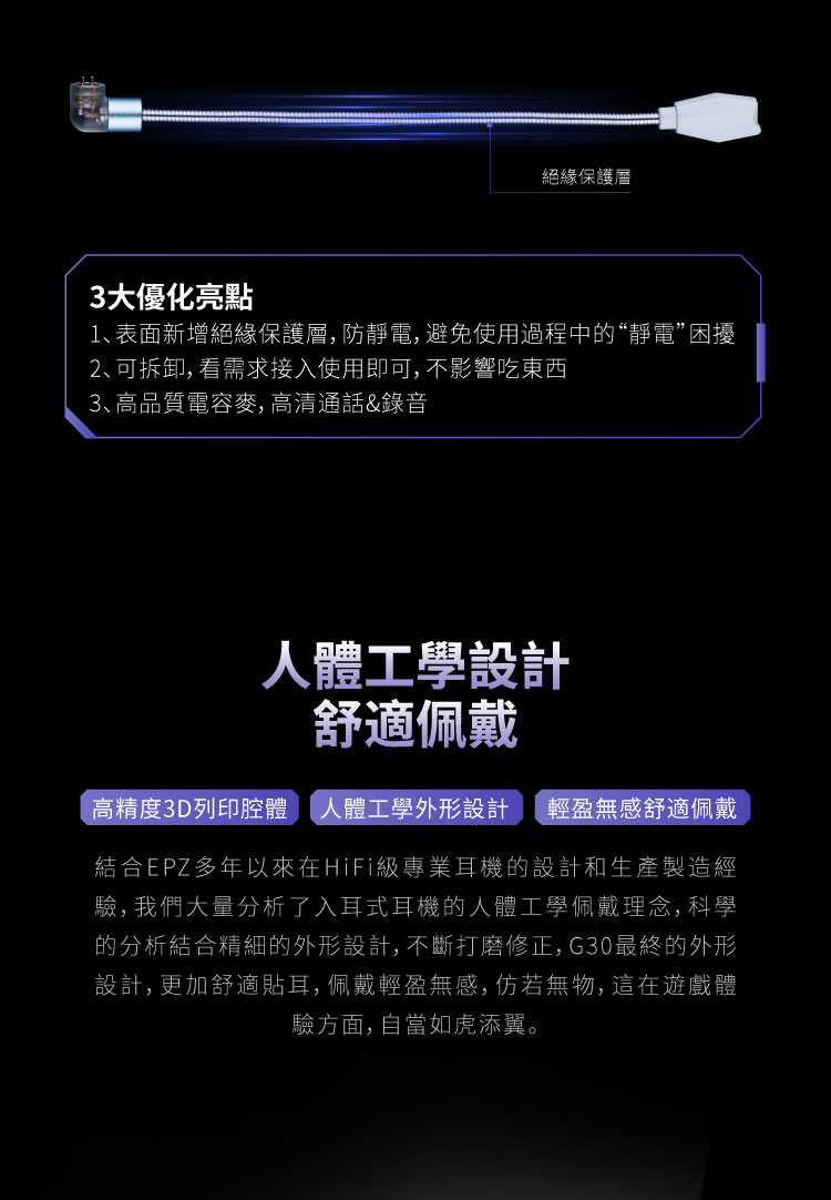 EPZ G30 Type-C 遊戲入耳式耳機 DAC調音架構 類比7.1環繞遊戲音效