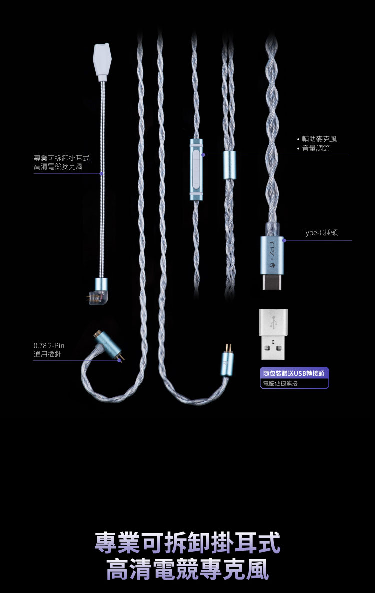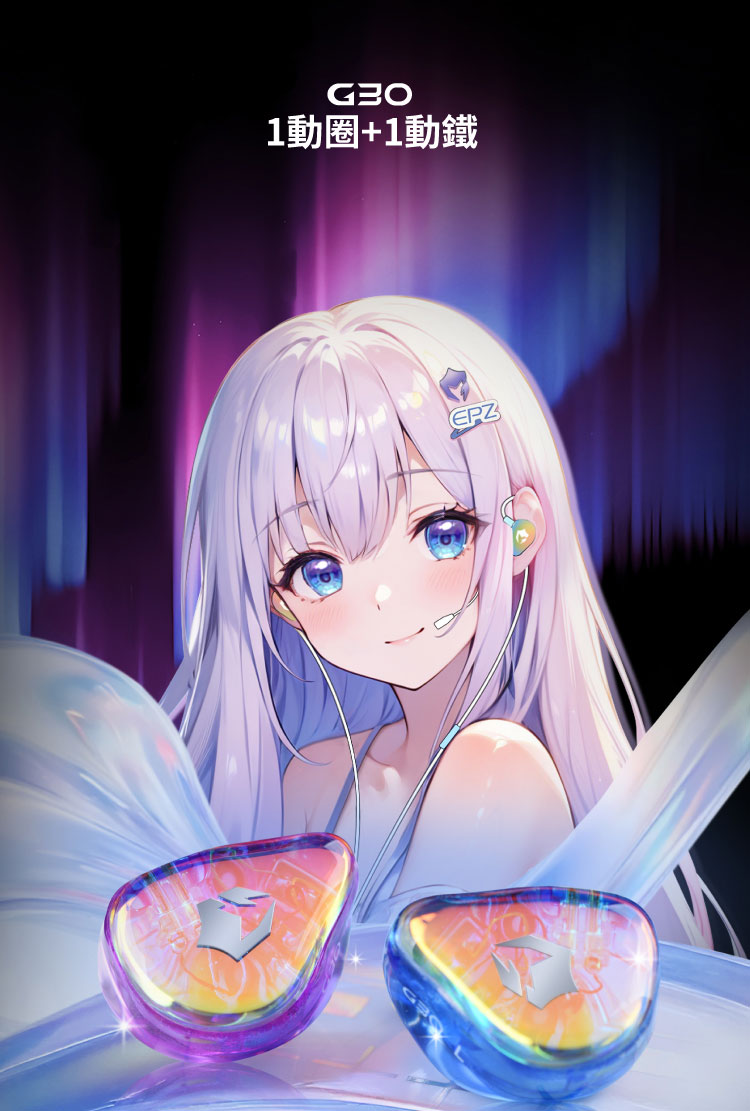EPZ G30 是一款以遊戲場景為核心設計方向的 Type-C 入耳式耳機,整體架構並非僅著重單一聽感,而是將耳機本體、數位解碼、調音系統與麥克風通訊能力整合為完整方案。它以 1 動圈加 1 動鐵的混合式單元作為基礎,並內建 HiFi 級 DAC 聲卡架構,讓使用者在手機、平板、筆電與電腦等裝置上,都能直接獲得較完整的遊戲音訊輸出能力。對於希望用一套設備同時兼顧遊戲定位、語音溝通與日常聆聽的使用者而言,G30 的定位相當明確。