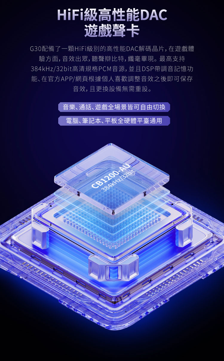 DAC功能:內建HiFi級DAC遊戲聲卡