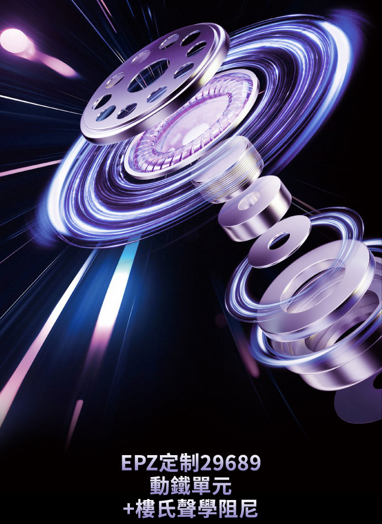 ● 搭載EPZ定製29689動鐵單元,提升中高頻解析與細節辨識力