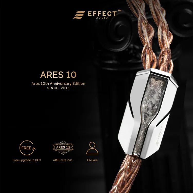 Effect Audio Ares 10 是為 Ares 系列十週年所推出的紀念版本,也是一條不只是延續經典,而是重新定義 Ares 系列高度的代表作。自 Ares 系列問世以來,便以濃厚音樂性、寬容耐聽與鮮明銅線韻味,成為許多玩家接觸升級線的起點。Ares 10 承接系列多年累積下來的工藝與調音經驗,透過更大規模的線芯結構與全新材料配置,進一步把銅線應有的厚度、情感與動態提升到更成熟完整的層次。它不是單純追求刺激感的聲音,而是以更濃郁、更自然、更有感染力的方式,呈現 Ares 系列十年淬鍊後的集大成樣貌。