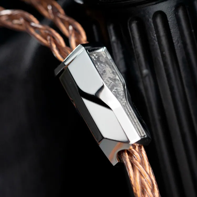 外觀與硬體設計方面,Ares 10 也展現出與十週年定位相稱的完成度。硬體部分引入冰晶鈦材質,利用獨特晶體紋理與鏡面金屬表面的對比,呈現更具辨識度的視覺層次,同時也兼顧結構強度與日常使用耐久性。整體比例則沿用 Signature Series II 的設計邏輯,確保配戴穩定與操作手感。耳機端採 ConX 可換插針系統,方便因應不同耳機介面需求,訊源端則配置 EA 訂製鍍銠黃銅 4.4mm 插頭,在傳輸穩定性、耐用性與高階系統搭配上都更具完整性。對於想尋找成熟銅線風格、重視人聲情感與音樂感染力,同時又希望保有高完成度工藝與現代規格彈性的玩家而言,Ares 10 是一條極具紀念價值與實戰實力的代表作品。