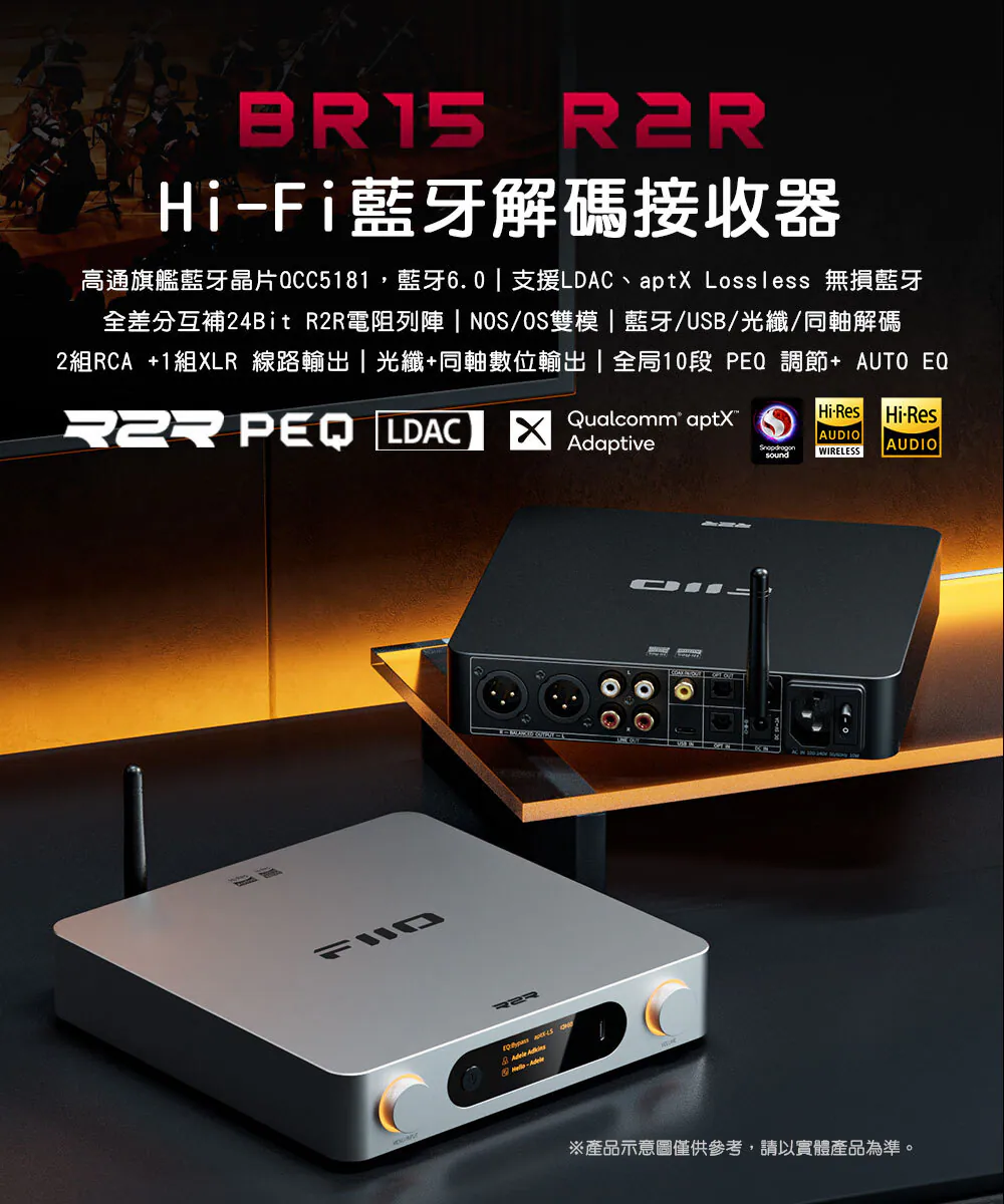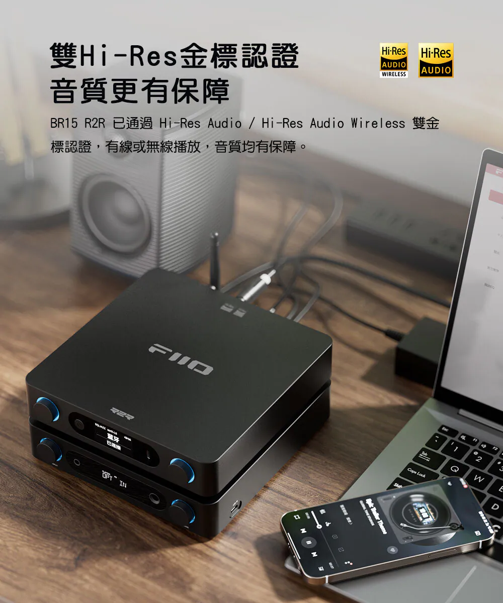 FIIO BR15 R2R 的定位並不只是一般藍牙接收器,而是專為將現有音響系統升級為高品質無線 Hi-Fi 使用情境而設計的桌上型音訊核心。它透過高規格藍牙平台、R2R 電阻陣列 DAC 架構與多元輸入輸出介面整合,讓原本僅具備有線播放能力的擴大機、主動式喇叭或桌面系統,快速取得更完整的數位解碼與無線串流能力。對於需要兼顧便利性、解析力、系統擴充性與音色風格的使用者而言,BR15 R2R 是一款明顯偏向音響系統整合思維的產品,而不是單純以功能堆疊為主的藍牙配件。