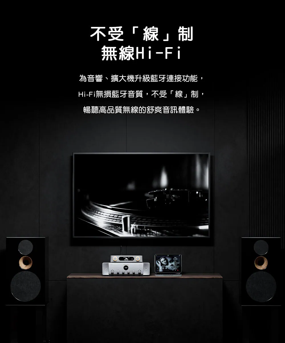 在無線音訊能力上,BR15 R2R 搭載高通 QCC5181 旗艦藍牙晶片,支援藍牙 6.0、LE Audio、LDAC、aptX、aptX HD、aptX Adaptive 與 aptX Lossless,能在便利的無線傳輸架構下維持高水準的音訊品質。對於以手機、平板、電腦或串流平台作為主要訊源的使用者來說,它能將原本受限於有線連接的桌面或家用系統,轉化為更自由的播放方式,同時盡可能保留高解析音源該有的細節與動態。再加上獨立外接天線設計,有助於提升傳輸穩定度、抗干擾表現與使用距離,使它在客廳、書房與桌面環境中都能更穩定地融入既有系統。