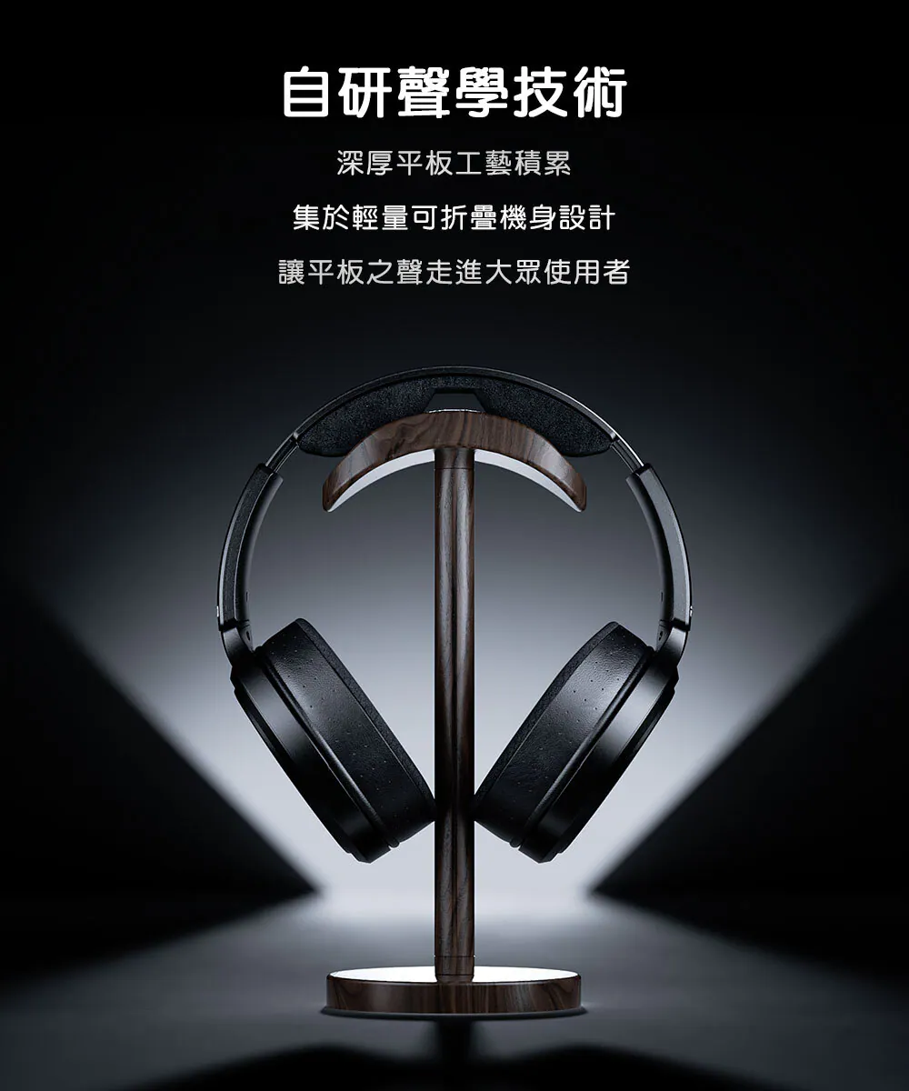 ● 95 × 86 mm 自研平板振膜單體,音場寬廣、低頻渾厚