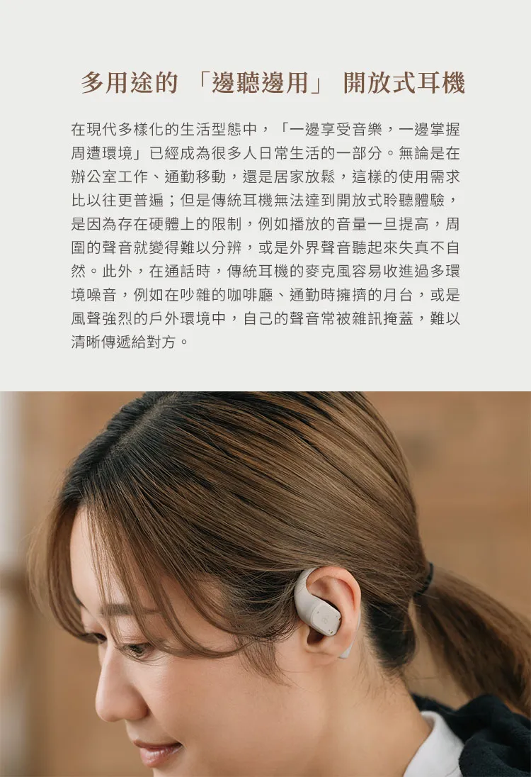 ● 開放式設計,邊聽邊用,掌握周遭環境更安全