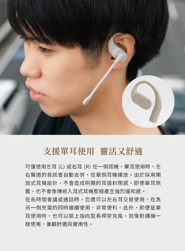 ● 支援單耳使用,左右耳可靈活切換