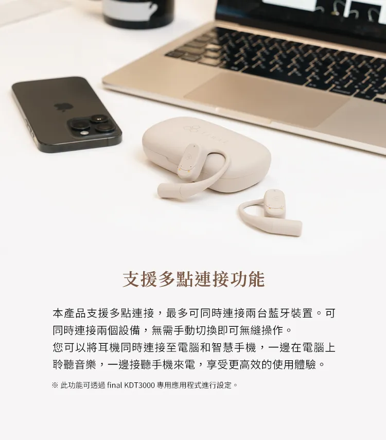 #Final #KDT3000 #開放式耳機 #耳掛式耳機 #AI降噪 #VoiceFocus #多點連線 #IPX4防水 #藍牙耳機 #通話耳機 #志達電子
