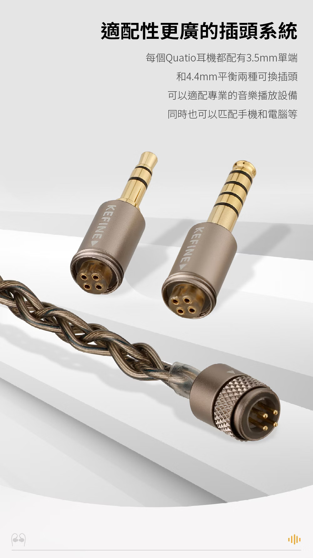 ● 標配3.5mm與4.4mm可換插頭,對應更多前端設備搭配
