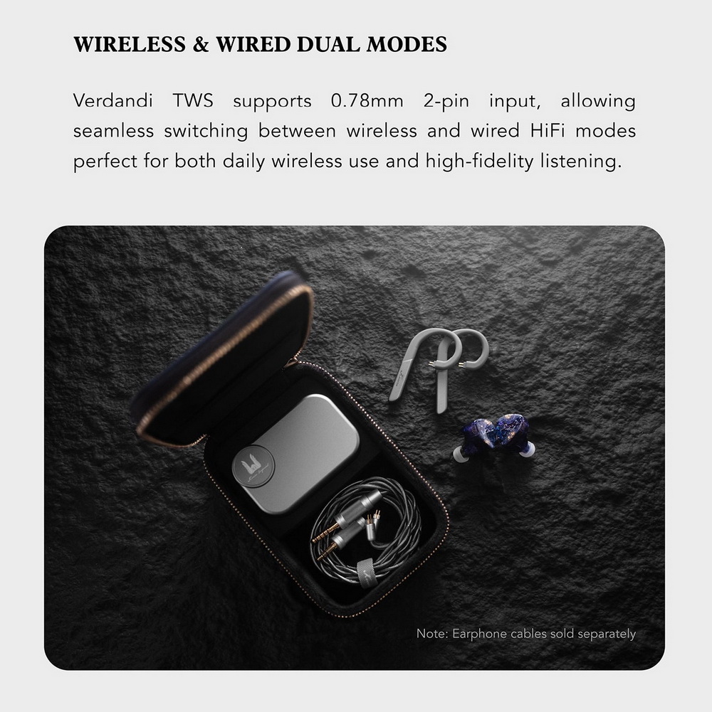 Verdandi TWS 是 Kinera 將旗下混合式多單元入耳架構延伸至真無線系統的旗艦型號,設計方向並非只追求便利性,而是希望在日常無線使用與有線高保真聆聽之間取得更完整的平衡。它支援無線與有線雙模式切換,並保留 0.78mm 雙針介面,讓產品不被單一使用情境限制,能同時滿足通勤、桌面聆聽與進階玩家對系統彈性的要求。