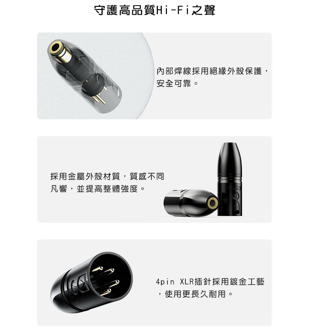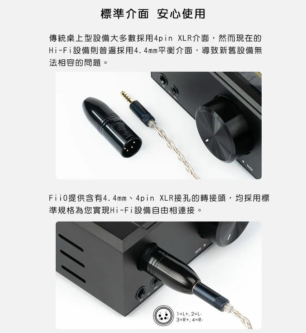 ● 官方規格設計,搭配FiiO及各品牌XLR設備皆能安心使用