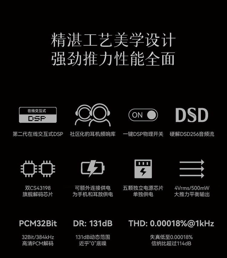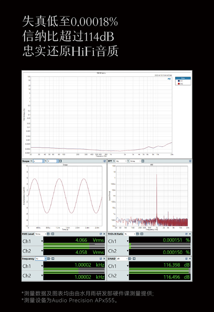 信噪比:3.5mm:126dB,4.4mm:131dB
