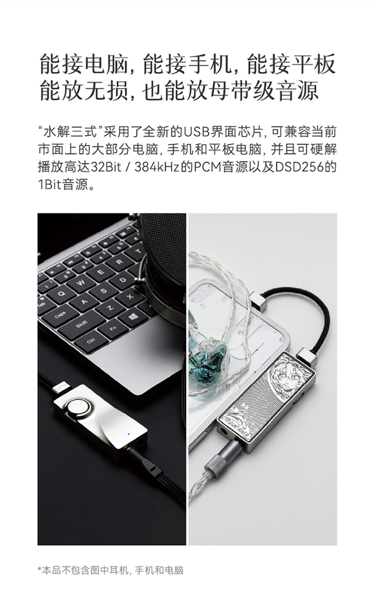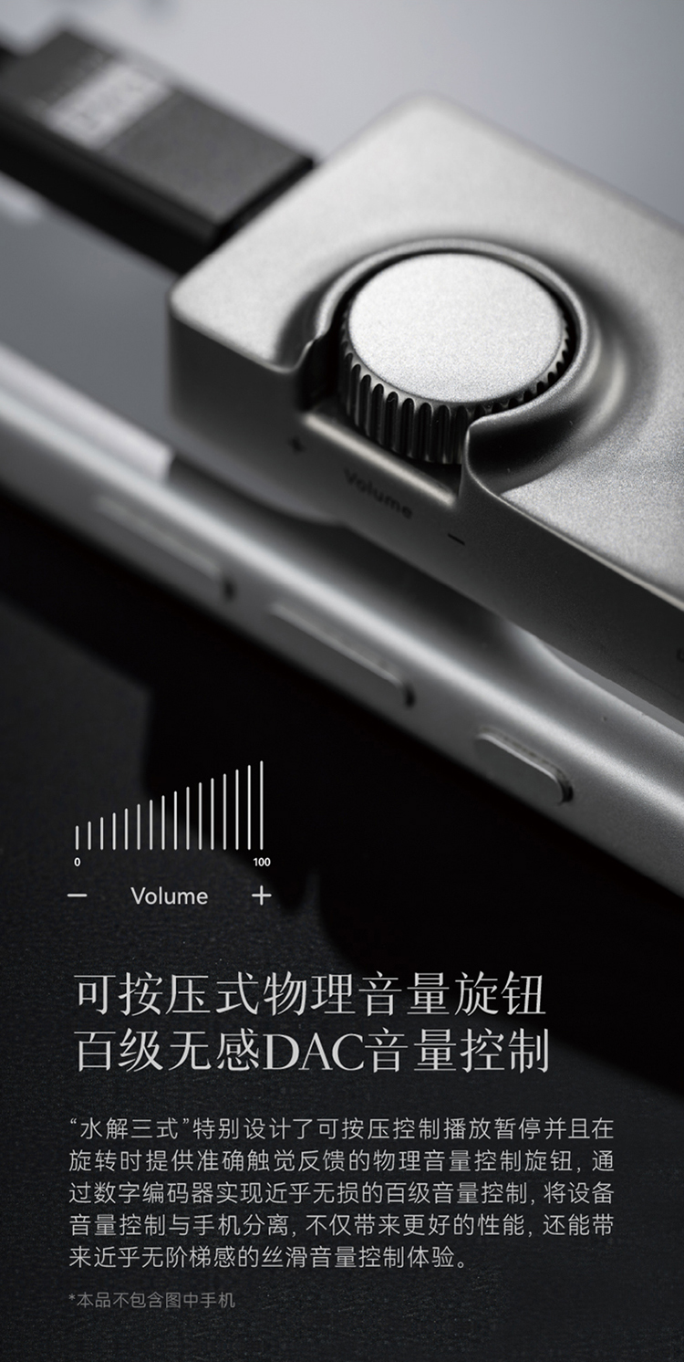 聲音取向上,水解3以高動態、低底噪與低失真為主要技術目標。4.4mm 平衡端可提供 131dB 信噪比與 131dB 動態範圍,THD+N 低至 0.00018%,有助於在高解析音源播放時維持背景乾淨度與細節層次。3.5mm 單端輸出則兼顧相容性,並支援 CTIA 標準線控麥克風,能對應通話、直播、遊戲與 K 歌等使用情境。整體設計重點在於讓便攜設備具備接近獨立解碼耳放的控制力與聲音穩定性。
