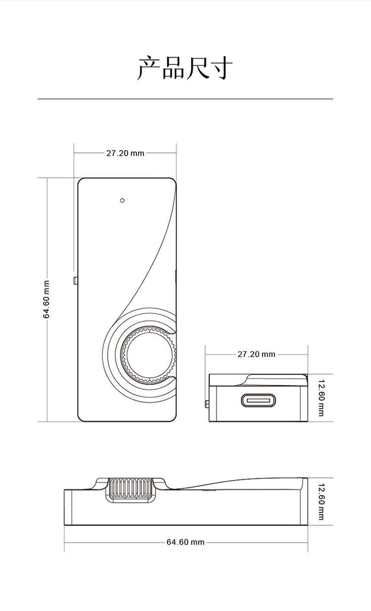 參考尺寸圖:64.6mm × 27.2mm × 12.6mm