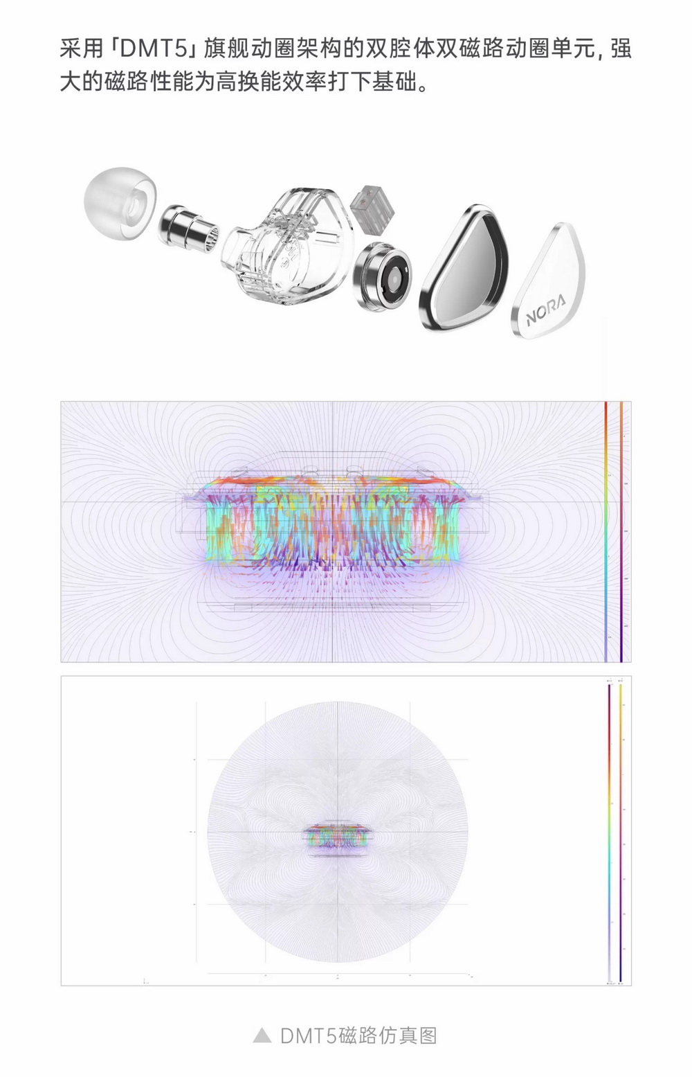 ● 採用 DMT5 架構內外雙磁路雙腔體動圈,聲音動態優異
