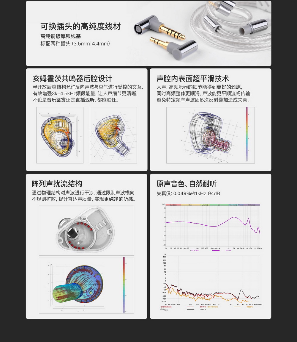 ● 半開放式玄姆霍茲共鳴器後腔,增強 3k-4.5kHz 細節表現