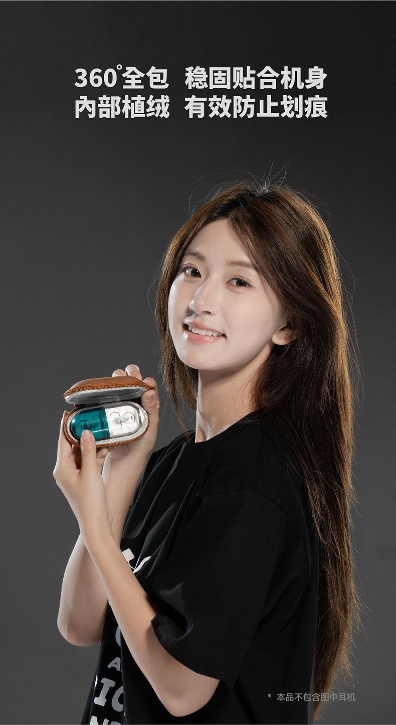 360° 全包式設計搭配內部柔軟植絨,不僅能穩固貼合機身,還能有效防止刮痕,讓耳機與配件在日常使用或外出攜帶時更加安心。