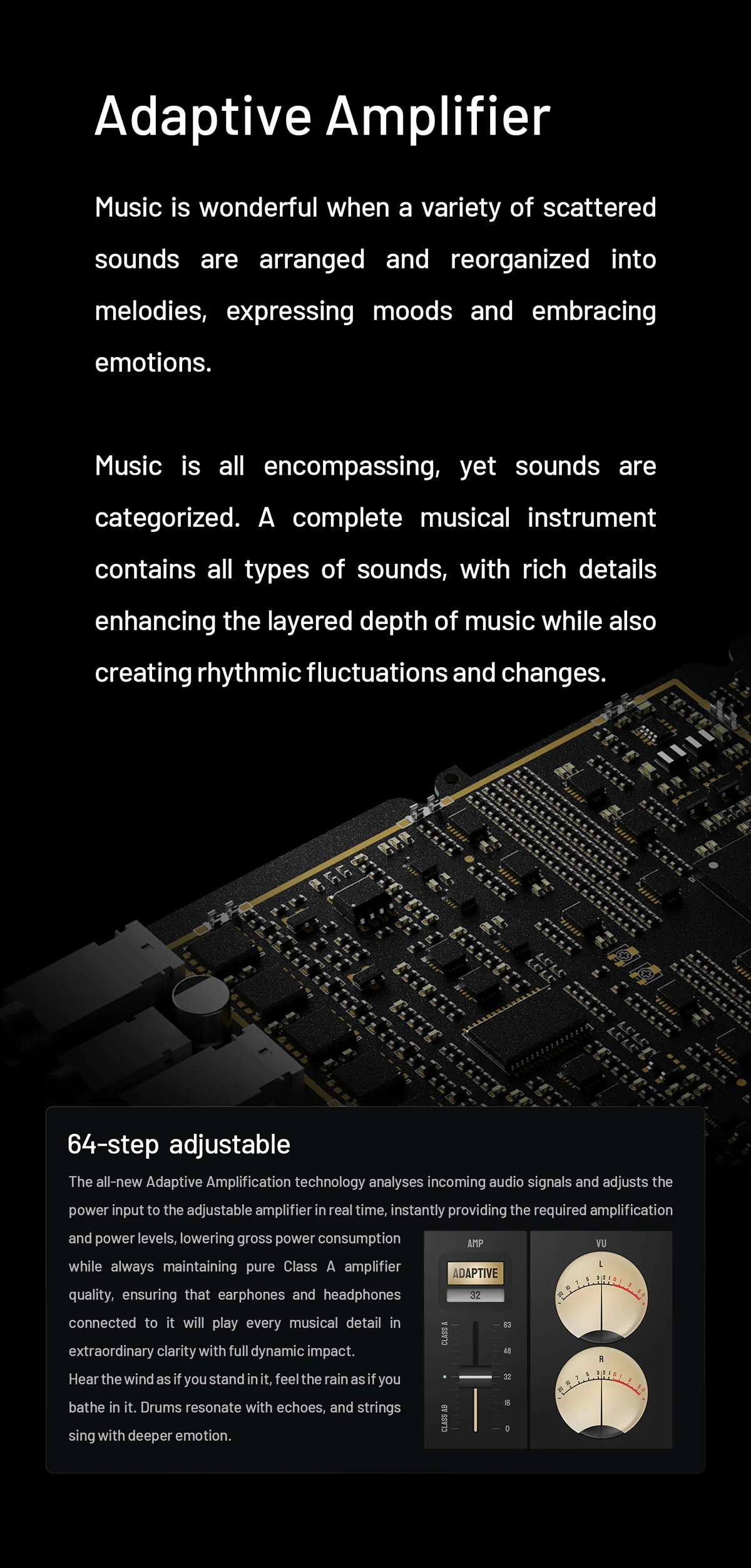 ● 64 段自適應 Adaptive Amplifier,可於 Class A / Class AB / 自動模式間智慧切換
