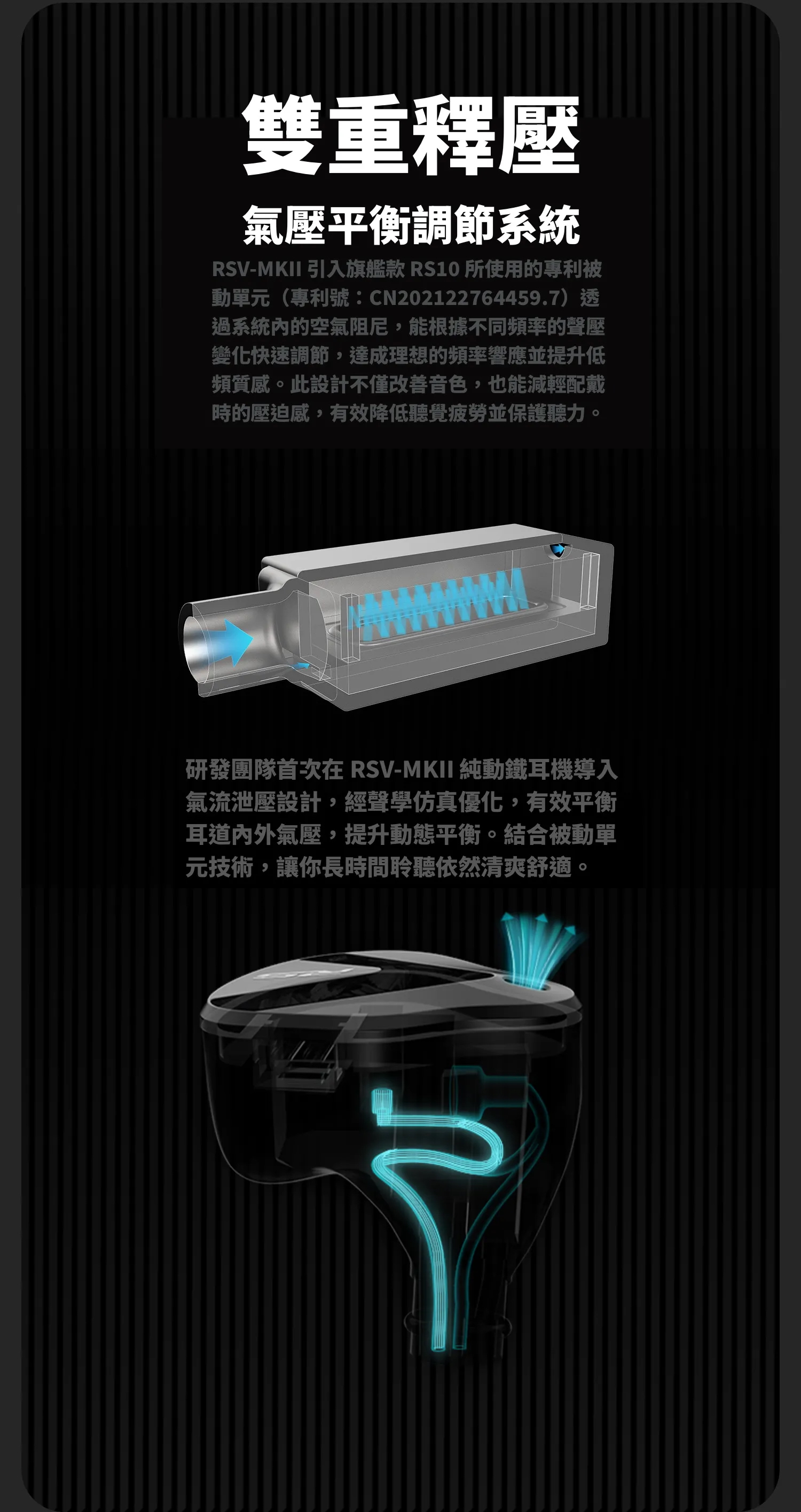 Softears RSV MKII 是 Softears 經典 RSV 的全面進化版本,保留五動鐵核心架構,加入雙重釋壓系統與四導管分頻設計,實現聲音能量更準確的分配與更自然的延伸。