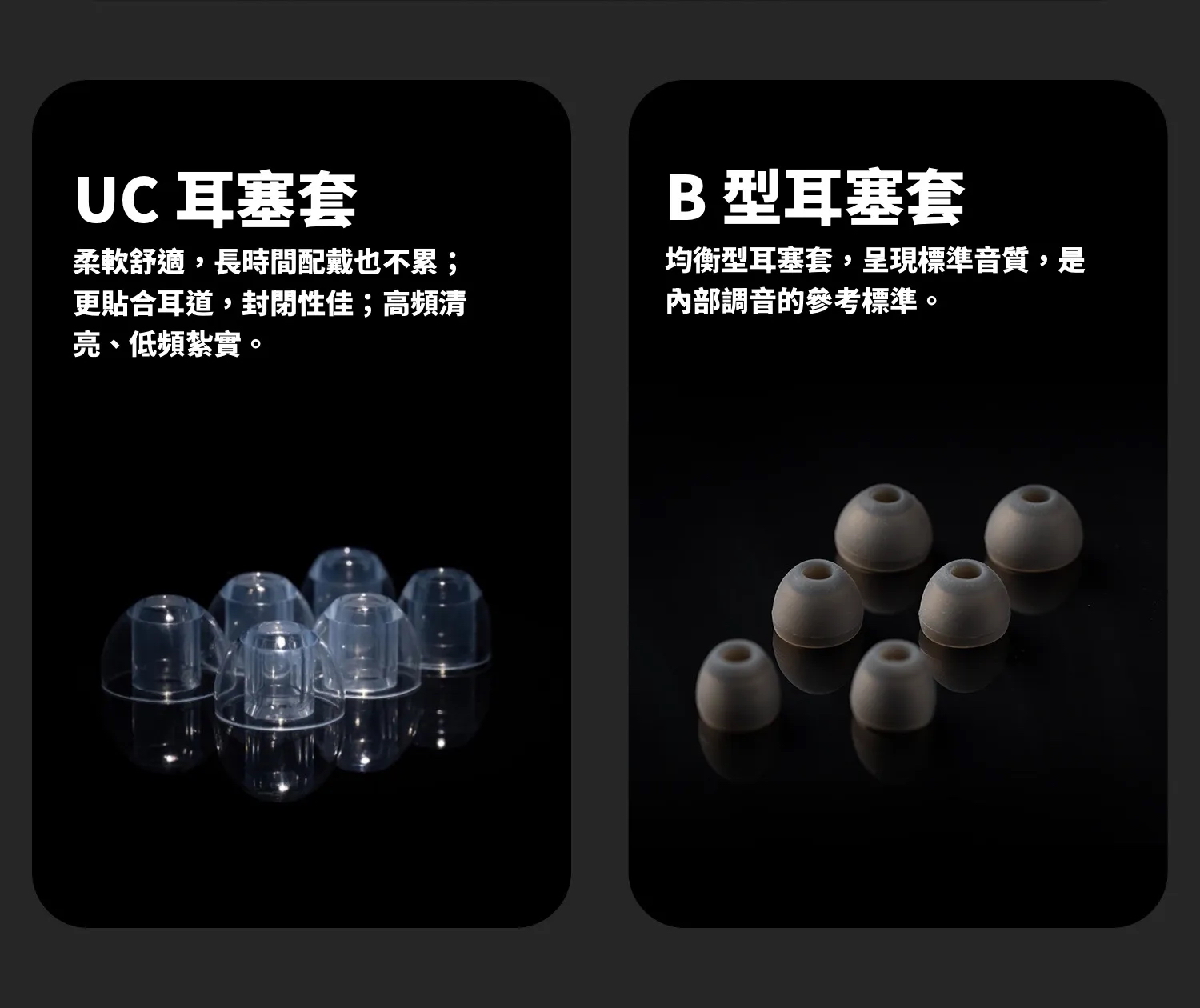 ● UC / B 型耳塞隨附,滿足不同聽感需求
