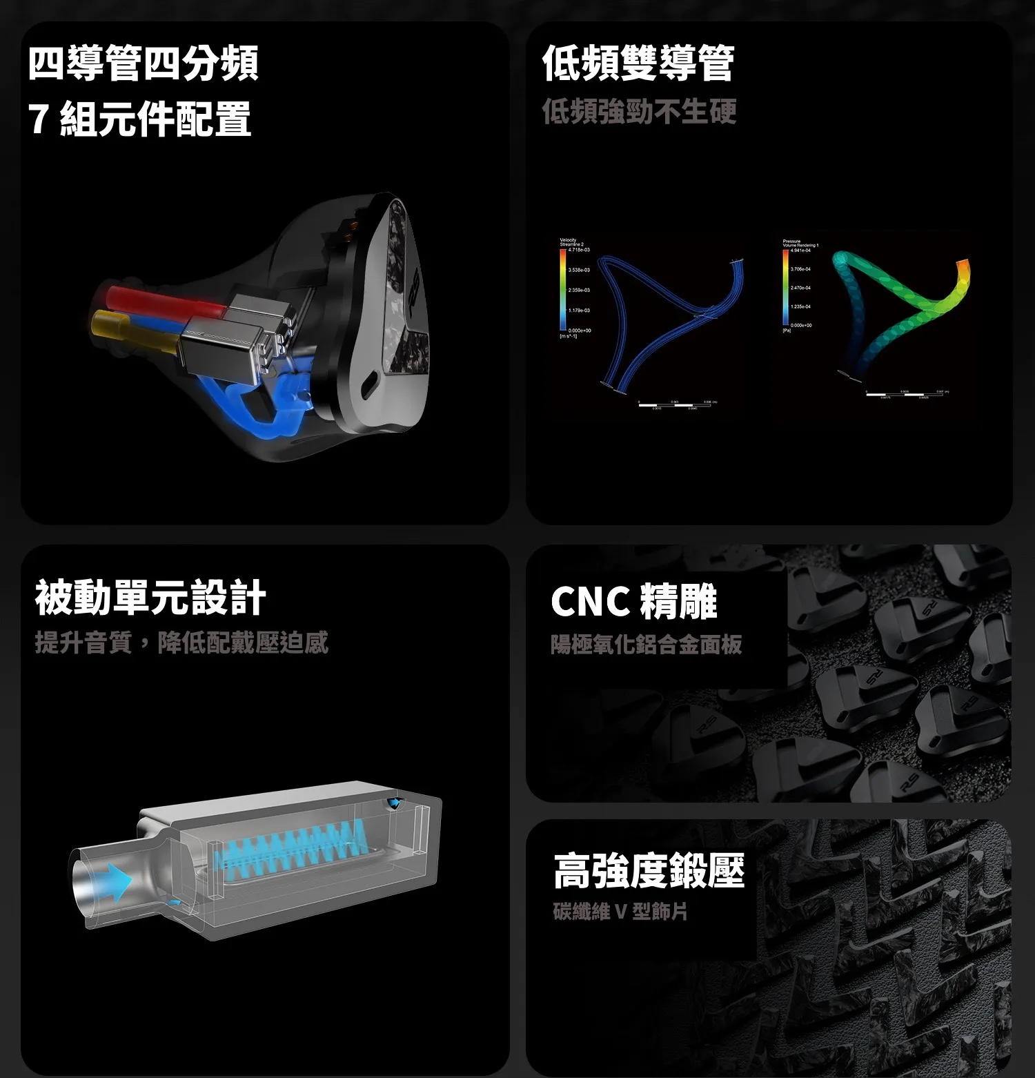 單元配置:5 顆動鐵單元 + 被動釋壓系統