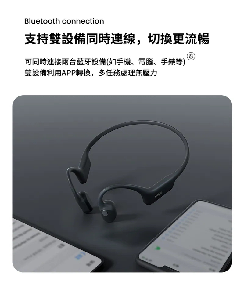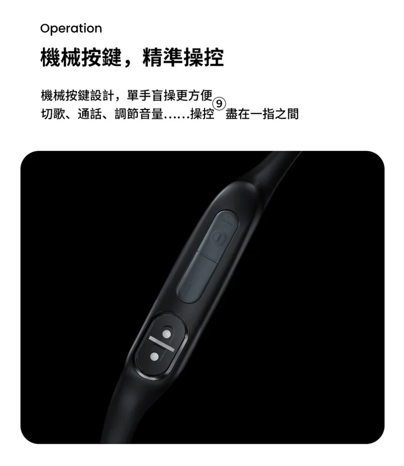 藉由藍牙 v5.1,OpenRun Air 支援同時連接兩台設備(如手機、電腦、智慧手錶),並可透過 App 輕鬆切換。機械按鍵設計則讓單手操作更直覺,無論切歌、通話或音量調整都能迅速完成。