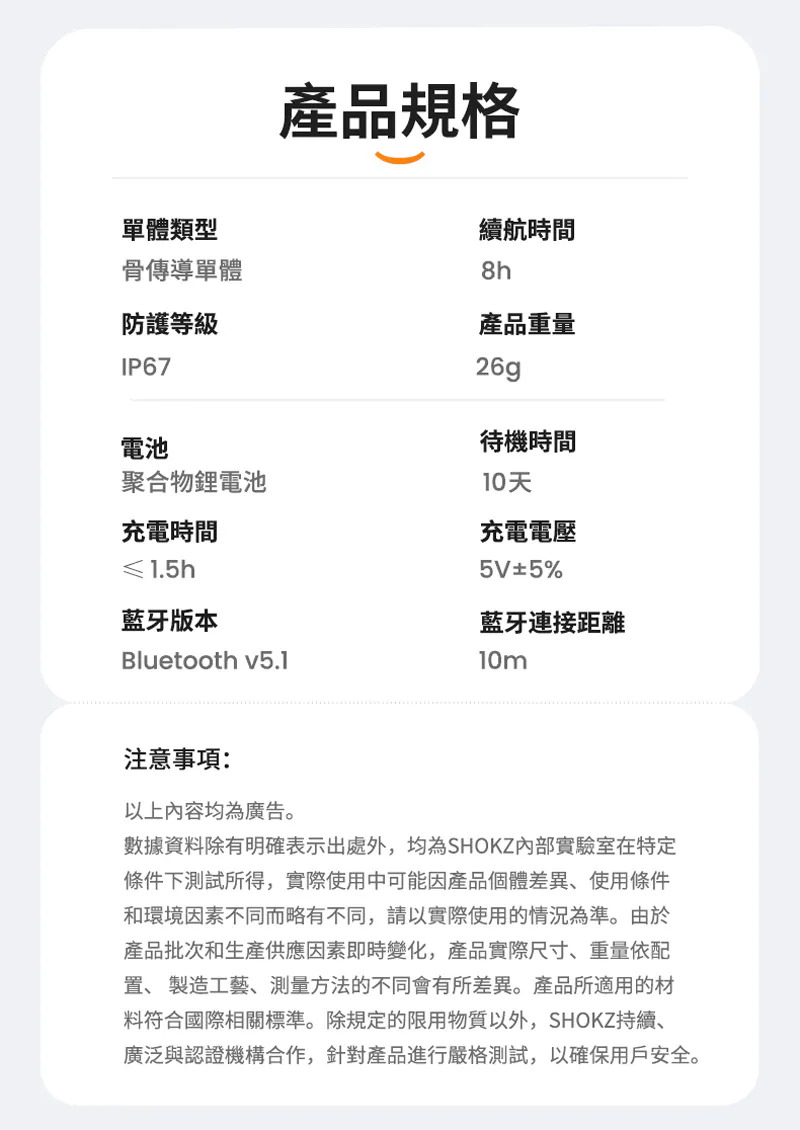 ● 開放式雙耳設計,運動時保持安全,隨時感知環境聲音