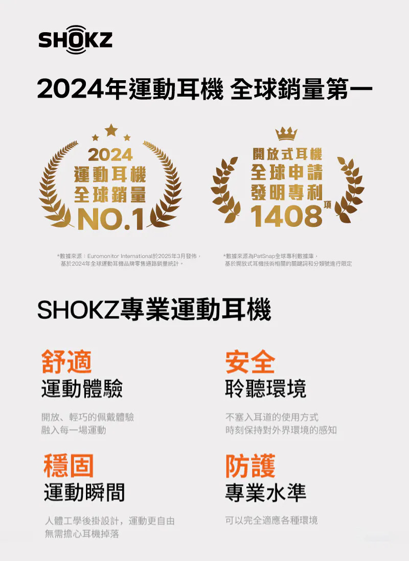 ● 2024全球銷量第一運動耳機,專業跑者與運動愛好者信賴之選