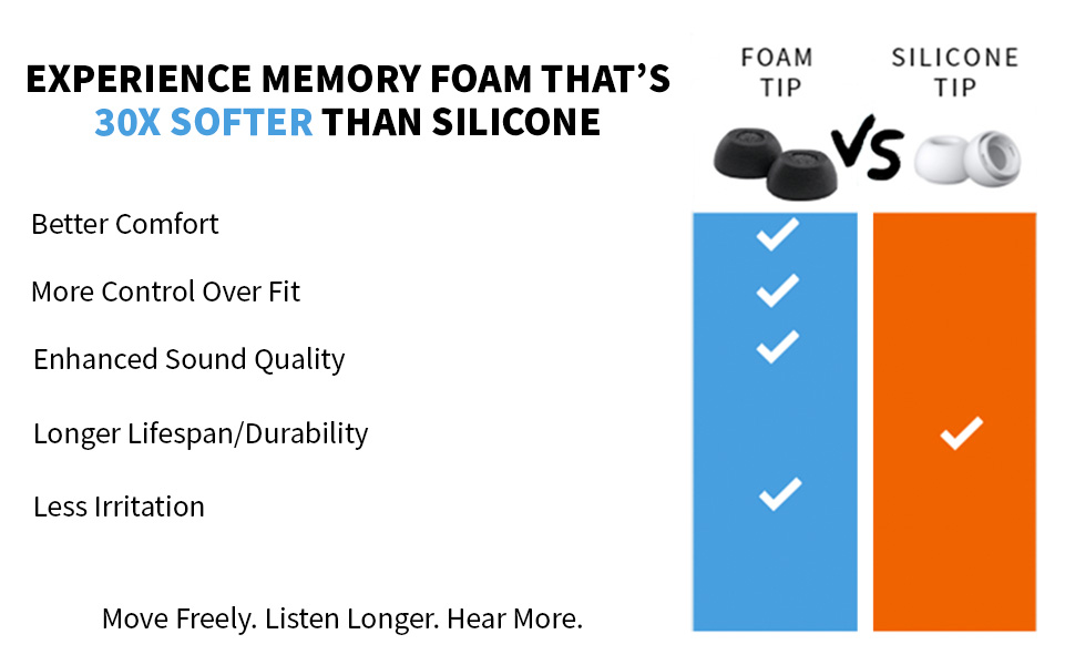 相較於傳統矽膠耳塞,Comply 記憶海綿能有效阻隔外部噪音,讓你即使在低音量下,也能清楚感受音樂的細節與動態,不僅保護聽力,也能提升音質表現。穩固的貼合度更避免耳塞滑落,適合運動、通勤、居家工作等多種情境。