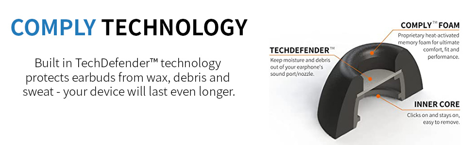 ● 專利 TechDefender™ 防護技術,有效防汗、防耳垢與雜質