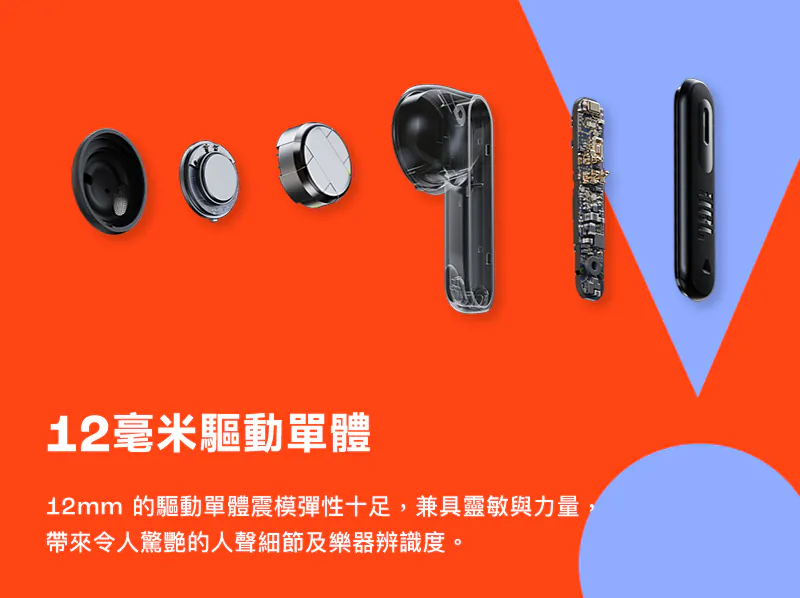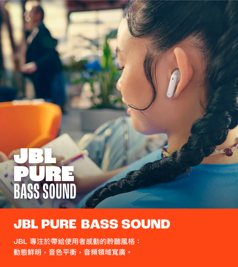 搭載 12mm 動態驅動單體,提供經典 JBL Pure Bass 音效,低頻紮實有力、層次清楚;同時支援 JBL Spatial Sound 空間音效,讓音樂、影音與遊戲呈現更具臨場感的立體聽覺體驗。
